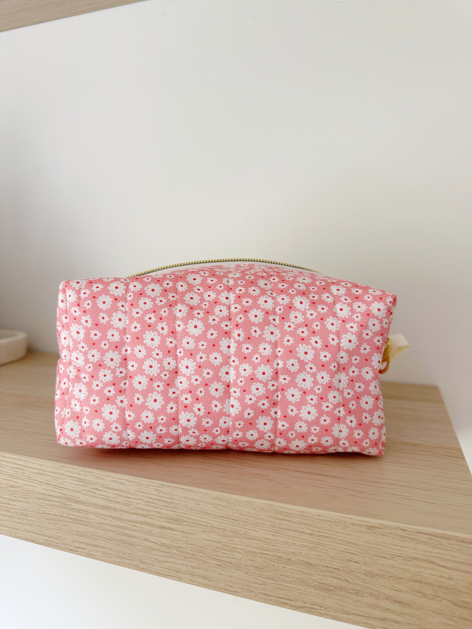 Each pouch is individually handmade in Australia using high-quality, durable fabric and finished with a luxurious gold metal zip for an elegant touch. Perfect for storing your makeup, skincare, brushes, or even as a chic travel companion for small accessories.
