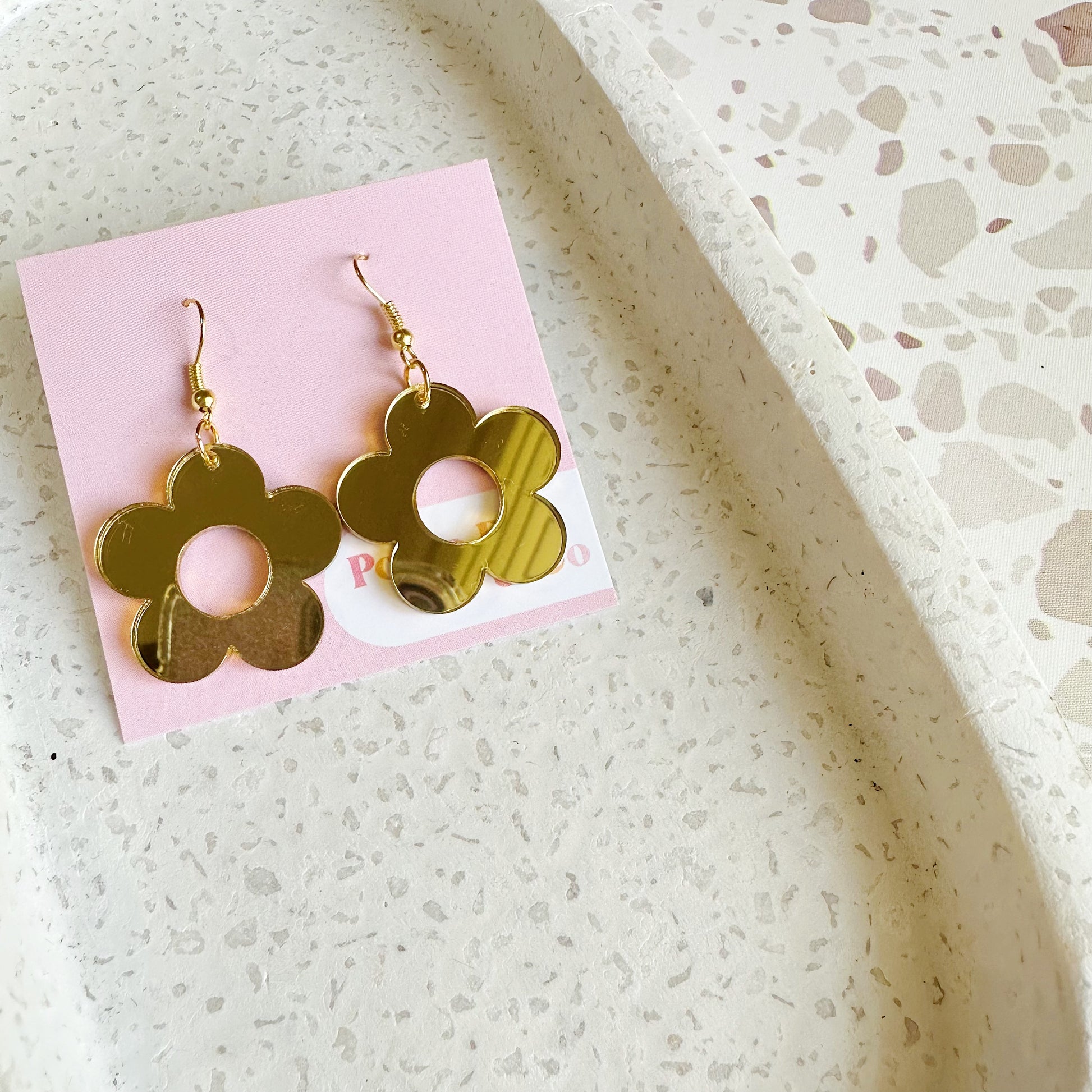 Gold Mirror Flower Earrings